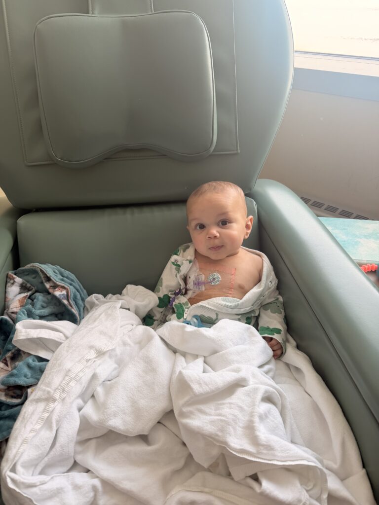 Later in February, Reginald had a complication affecting his liver called Veno-Occlusive Disease (VOD), or Sinusoidal Obstruction Syndrome (SOS). His care was quickly transferred to Children’s Hospital, and he was admitted for 10 days to be stabilized and observed. Despite all of this and some additional bumps along the way, Reginald remains a smiley, happy baby.